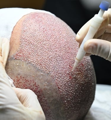 FUE (Follicular Unit Extraction) is a modern, minimally invasive hair transplant technique. In this method, individual hair follicles are carefully extracted from the donor area (usually the back of the head) and implanted into the thinning or balding areas.